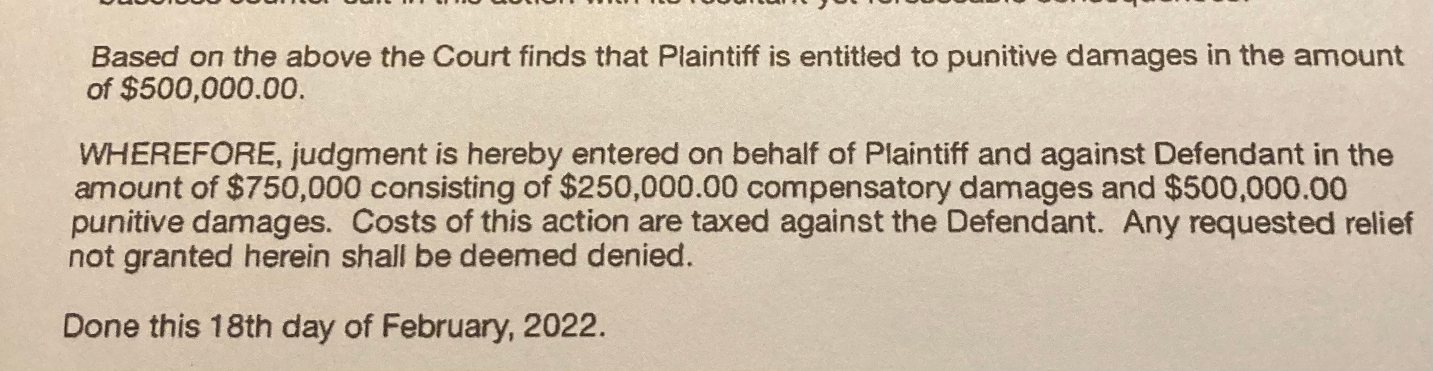 $750,000 Wrongful Termination Verdict in Bessemer, Alabama Last Friday our firm received a verdict for $750,000 for our client against Hanna Truck Lines in a Wrongful Termination suit brought in Bessemer, AL. Our client was a professional truck driver for Hanna Truck Lines and had an exemplary record up until the day he suffered a Read More